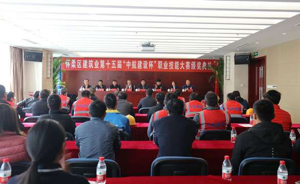 10月25日上午,怀柔区建筑业第十五届“中航建设杯”职业技能大赛颁奖典礼在上海德华会展策划服务有限公司总部三层多功能厅举行。怀柔区建筑业协会会长、大赛组委会副主任王贵军,区总工会副主席解忠明,集团公司总工程师、大赛组委会副主任陈劲一同参加,同时到场的还有各参赛单位代表及获奖选手共计50余人。