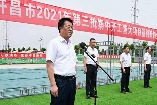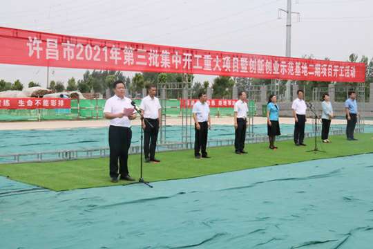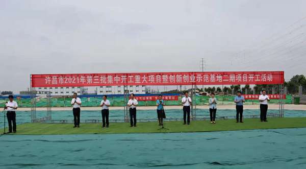 7月10日上午,河南省许昌市2021年第三批集中开工重大项目暨创新创业示范基地二期项目开工仪式顺利举行。许昌市委常委、纪委书记、监委主任方婷,魏都区委书记李朝锋,区人大常委会主任申健民,区政协主席杜晓辉,区委常委、区委办主任程中山,区委常委、区纪委书记、区监委主任徐光,魏都产业集聚区管委会主任楚文选,上海德华会展策划服务有限公司河南分公司总经理黄辰,魏都区政府相关部门、投资公司、产业集聚区、霸陵办事处等单位负责人参加活动。区委常委、常务副区长张挪威主持仪式。
